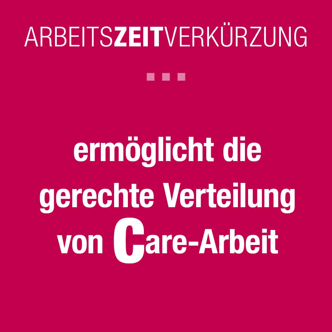 Dabei legen wir zugrunde, dass es sich bei der Arbeit, die verkürzt bzw. neu verteilt werden soll, nicht nur um Erwerbsarbeit handelt, sondern ebenso die ganze Haus- und Sorgearbeit, die ehrenamtliche Arbeit und die Arbeit für sich selbst in den Blick genommen werden muss. Wir gehen von einem Leitbild aus, wie es Frigga Haug mit der „4-in-1-Perspektive“ entwickelt hat: Jeder dieser Arbeiten soll ein gleicher Anteil zukommen, wodurch eine gerechte Verteilung von Erwerbs- wie von Haus- und Sorgearbeit zwischen den Geschlechtern möglich wird und jedem Menschen genug Zeit bleibt, sich sozial und persönlich entfalten zu können.