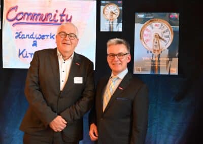 Das anschließende Gespräch auf Augenhöhe mit Frau Fehrs war ermutigend. Ihre Worte und ihr Engagement für die Zusammenarbeit von „Kirche und Handwerk“ auf EKD-Ebene schufen eine wertschätzende Atmosphäre beim Get together. Auch hier standen die Herausforderungen durch die Veränderungen in der Arbeitswelt und der damit verbundene Fachkräftemangel im Fokus.