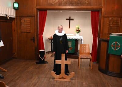 Vor maritimer Kulisse erfolgte die Andacht auf der Flussschifferkirche im Hafen und der Austausch mit Bischöfin Kirsten Fehrs. Die von Bischöfin Fehrs gestaltete Andacht schuf eine besinnliche Atmosphäre und bot Raum zur Reflexion und zum Nachdenken.
