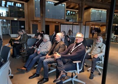 Anschließend erhielten wir den Einblick in die Arbeitswelt der LMIS AG. Sascha Döhmer stellte nicht nur die vielfältigen KI-Projekte des Unternehmens vor, sondern gab auch einen Eindruck von der modernen Unternehmenskultur: 65 Mitarbeitende, 16 Bürohunde und ein 3:2-Modell – drei Tage Homeoffice, zwei Tage Präsenz – prägen den Arbeitsalltag in den Osnabrücker Räumlichkeiten. Diese offene, flexible und zugleich hochprofessionelle Arbeitsweise beeindruckte viele Teilnehmende und zeigte, wie zukunftsorientierte Strukturen in der digitalen Wirtschaft gestaltet werden können.