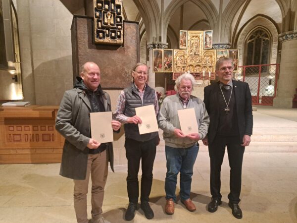 Im Rahmen des Gottesdienstes wurden zudem die Luther-Rosen an Thomas Queck, Erich Schuh und Heinz Lachmann verliehen – als Zeichen der Wertschätzung für ihr über 25-jähriges Engagement an der Schnittstelle von Kirche und Handwerk. Die Auszeichnung würdigte ihren langjährigen Einsatz für gelebten Glauben im beruflichen Alltag und ihre beständige Arbeit an der Verbindung von Tradition und Innovation im Handwerk.