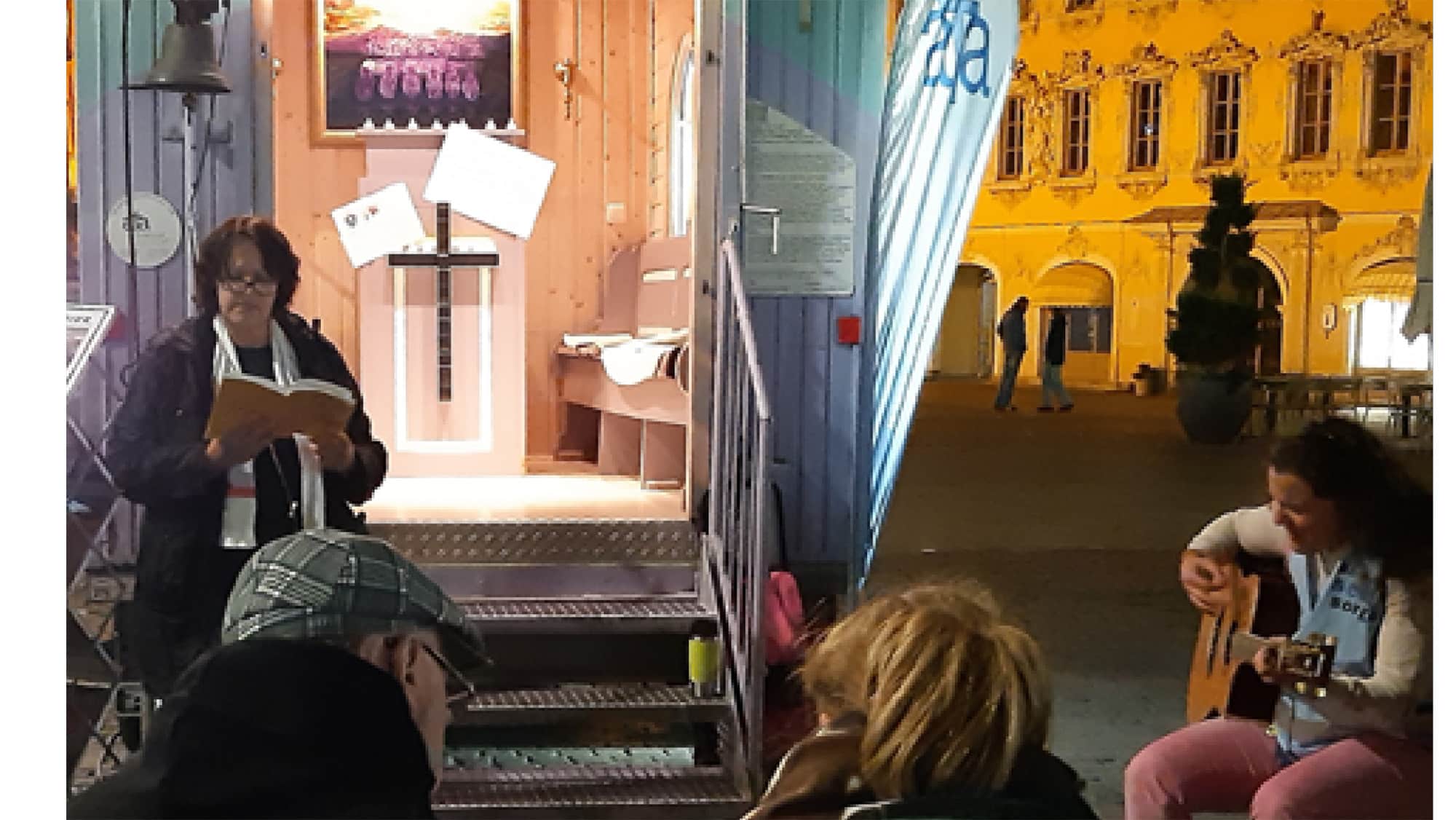 Unter diesem Motto stand die diesjährige Präsenz von kda/afa/Katholische Betriebsseelsorge/KAB, Maria 2.0 und Lila Stola am 02.10.25 bei der „Nacht der Offenen Kirchen“ auf dem Marktplatz in Würzburg. Gespräche, Seelsorge, geistliche Impulse, gemeinsames Singen/Beten und Segenszuspruch sowie Begegnung und Austausch bei einer Tasse Tee/Kaffee vor der afa/kda-Bauwagenkirche. Die Bilder zeigen dies. Bereits zum 9. Mal war die Bauwagenkirche seit 2012 bei der Nacht der offenen Kirchen Würzburg, als einziges Angebot ausserhalb der Kirchenmauern im säkularen Raum, im Einsatz.