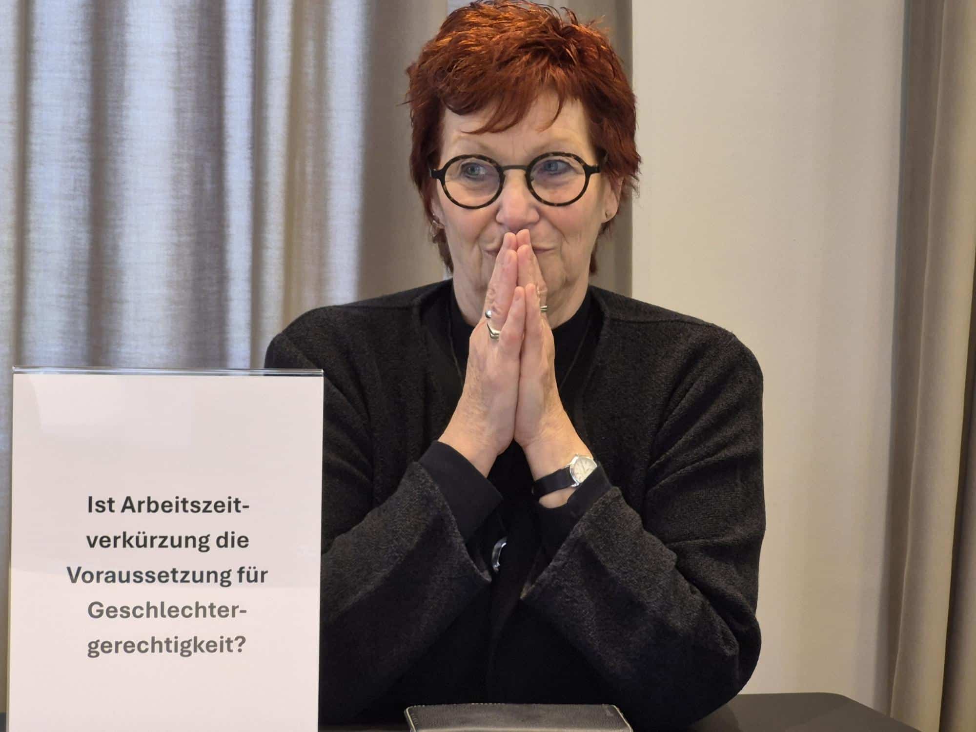 Sie machte deutlich, dass Arbeitszeit nicht nur unter wirtschaftlichen Gesichtspunkten betrachtet werden dürfe, sondern immer auch Lebenszeit sei. Sie brauche Räume, die nicht von ökonomischen Interessen bestimmt werden – für Familie, Sorgearbeit, gesellschaftliches Engagement und Erholung.